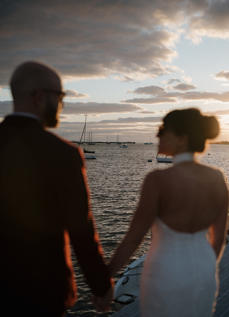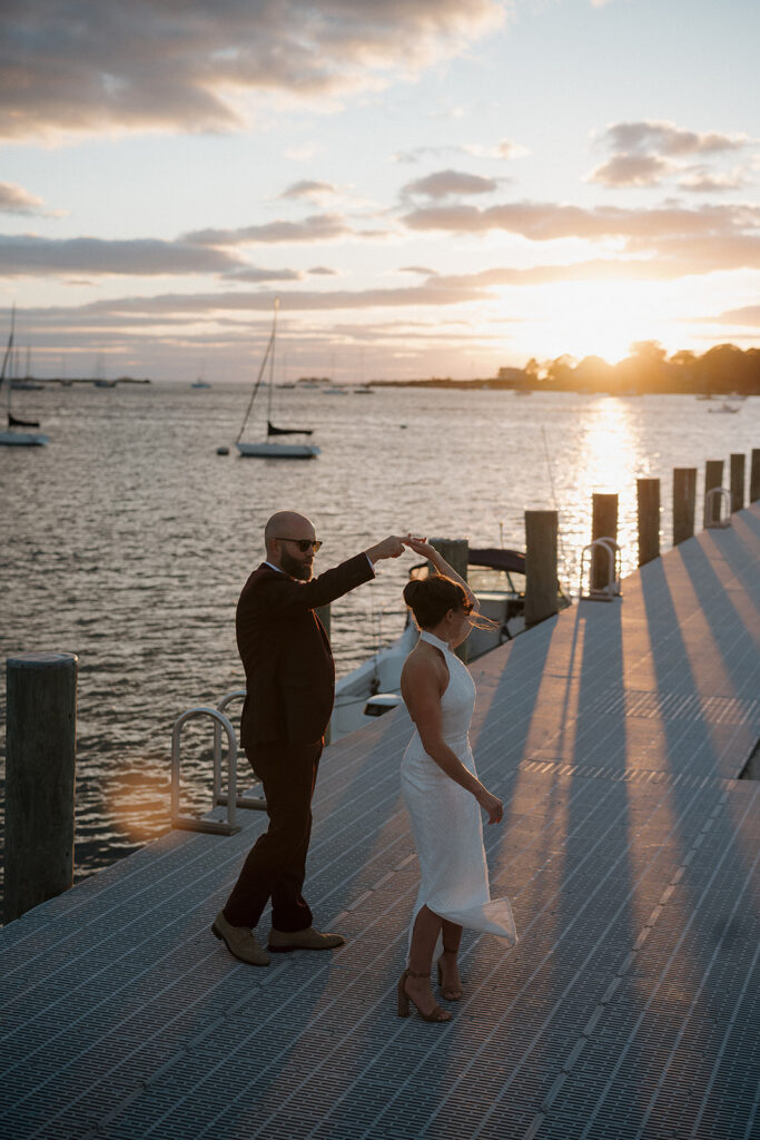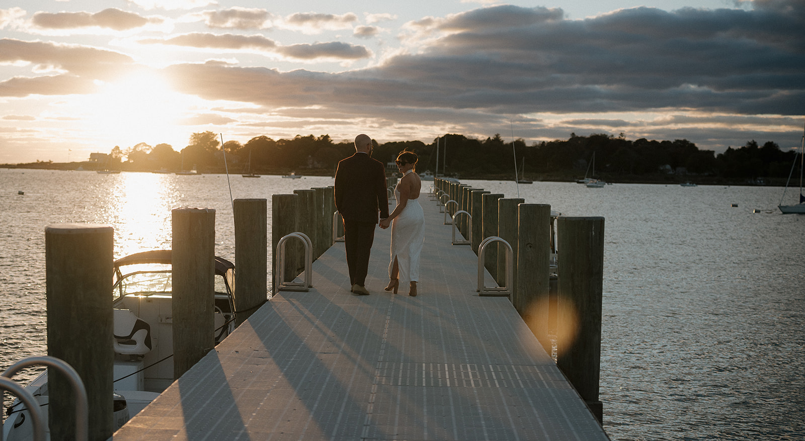 The night before their Stone Acres Farm wedding, Caroline and Pasquale hosted an intimate rehearsal dinner at Breakwater in Stonington. As golden hour was starting to set across the harbor, we slipped out onto the dock for portraits. The setting here was absolute perfection!
