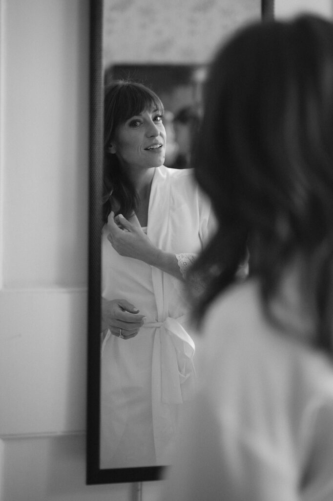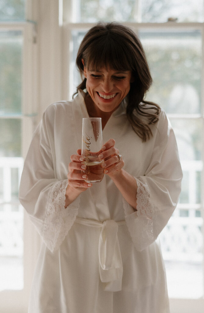 After the ceremony, Caroline and Pasquale slipped back into the manor house with their sweet dog Sunny, allowing for a few quiet moments to settle into the reality of just-married life. Inside, the historic rooms felt soft and intimate with the patterned wallpaper, filtered window light, and small pockets of stillness where they shared a drink and simply existed together.